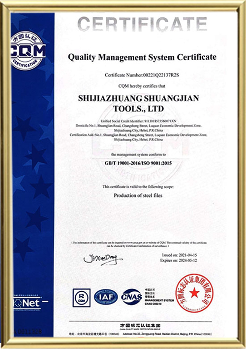 In June 2001, the factory moved to No. 1 Shuangjian Road, Luquan District . In the same year , the factory completed its shareholding system reform and was renamed Shijiazhuang Steel File Factory, marking the beginning of the factory's resurgence.
